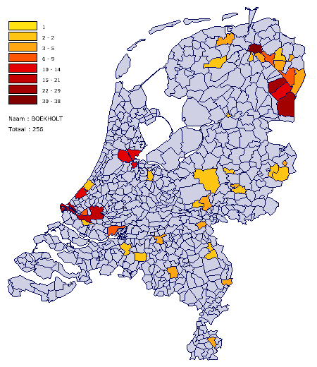 Boekholt was often the Dutch translation of the village Bocholt in Germany but a number of bearers of the name can possibily make a connections with the village Boekholt or Boekelte, county of Weststellingwerf, in Friesland.